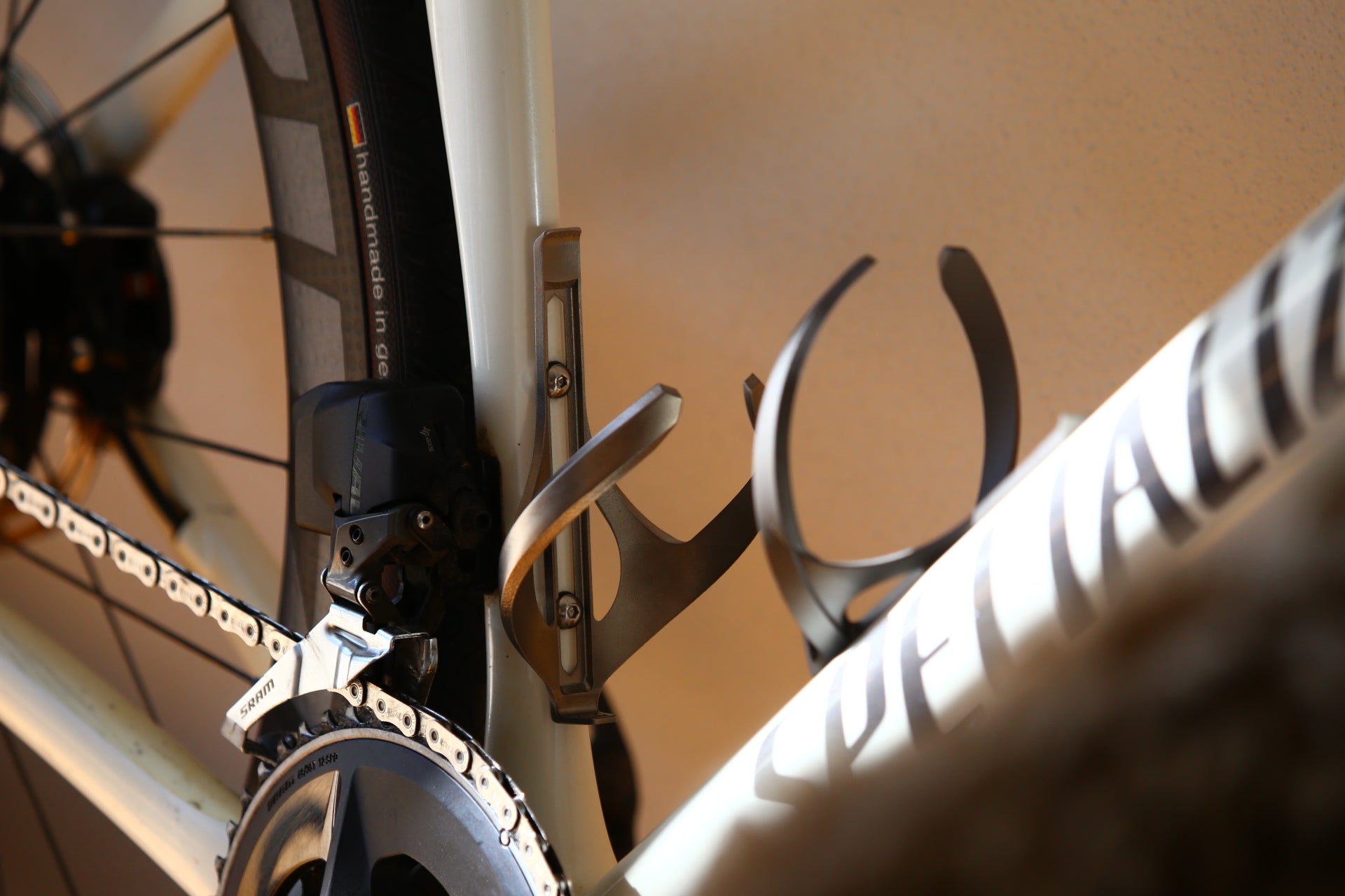 Made from ultra-lightweight yet robust aerospace-grade titanium, the bottle cage is definitely a highlight in any frame triangle. At just 25 g, it's an absolute lightweight for a metal bottle cage. The sophisticated, hollow-walled design provides extreme stability and enough flex to grip the drinking bottles securely. Tried and tested on the road and in the forest, on cobblestones and rough dirt roads!